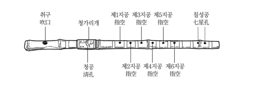 대금은 크게 취구, 지공, 청공, 칭성공으로 구성됩니다.